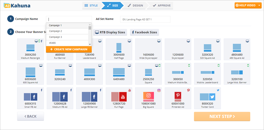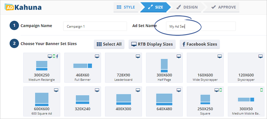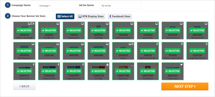 Step 7. Choose your banner set sizes that you need to include in your new Banner Group Set.