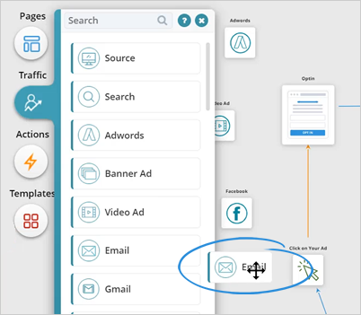 Step 9. If you are planning to add Adwords and Video Campaigns, drag the elements to the builder. Repeat this step if you're going to add more sources to get more traffic to your opt-in page.