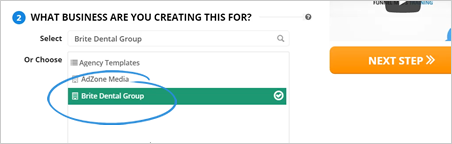 Step 6. Choose the business you are creating this funnel map for and click Next Step.