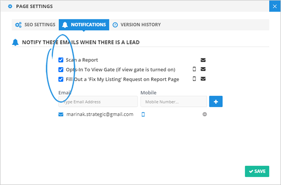 Now that you have created your landing page, the next step is setting up notifications that will alert you once someone scans a report, opts into your View Gate, or requests to fix their listings.