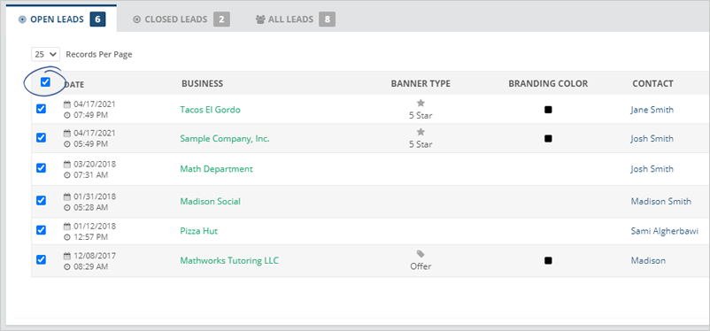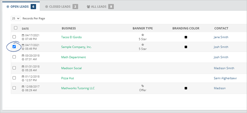 Step 2. Choose the lead or leads that you want to export to CSV.