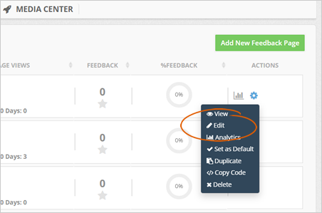 Step 4. Click the cogwheel icon and select Edit to edit your Feedback Page.