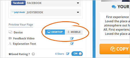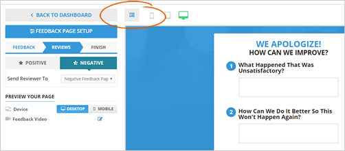 Switch between the Desktop or Mobile View to see how your Feedback Page looks like on Desktop and Mobile Devices.