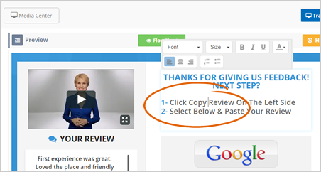 Always make sure that the users can still see the buttons they need to click on to leave a review, as this is the most important action step. So it is a good practice always to check your actual page's preview. To do this, click the Hide/Show Sidebar Controls icon.