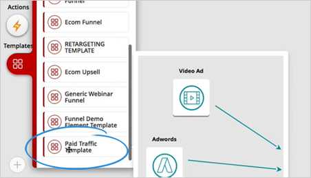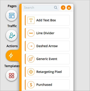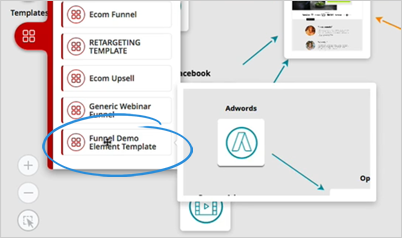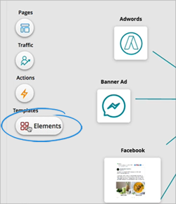 Now that you have your Funnel Map put together, you will notice that there is a button that says Templates and inside of it, you will see Elements.