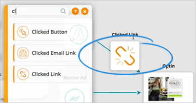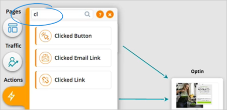 To add that particular action, go over to actions and add Click Link. The easiest way to do that is by typing that action’s keyword, which, in this example, is "cl".