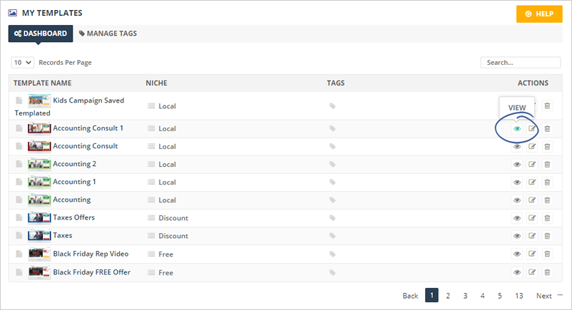 Step 3. In the Dashboard tab, you will see all the templates that you have created.