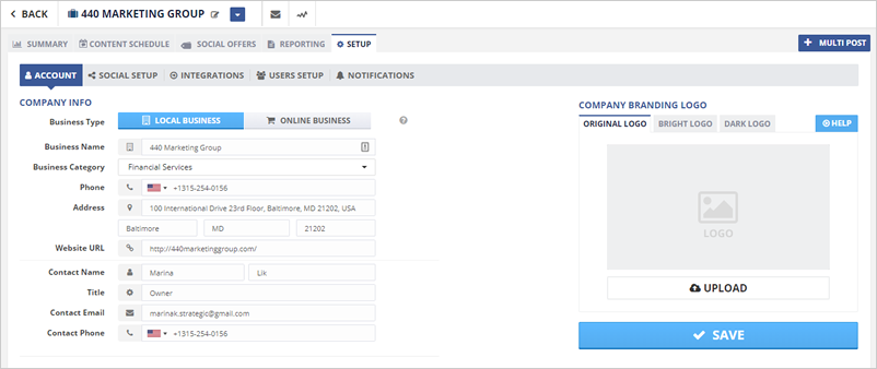 Step 5. You will be redirected to the Business Account Tab where you will be able to Update the business’s information.