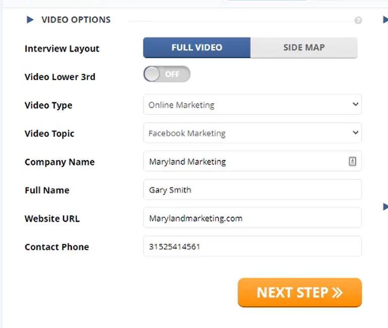 This section is already pre-filled through the Video Options you’ve set up earlier. You can see the basic details of the company and the name of the person who will do the interview video here.