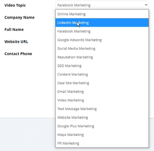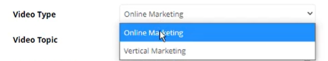 This depends on the video types you’ve selected. Selecting an Online Marketing type lets you pick the expertise area and selecting Vertical Marketing type lets you pick your Market Niche.