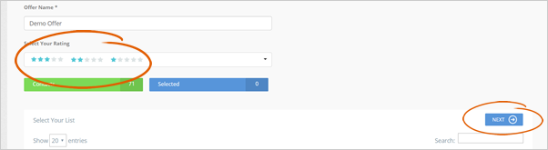 Step 7. You will notice that as you select the stars for your rating, the reviews that have the corresponding star will automatically be selected. Once you have set up your rating and the corresponding reviews are chosen, you can click Next.