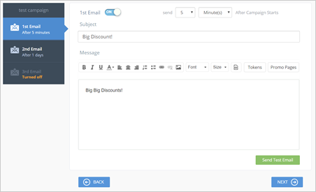 Step 13. This next section gives you the ability to create your email content. In here, you must add tokens and your Promo Page link where users can click and see what you are offering them.