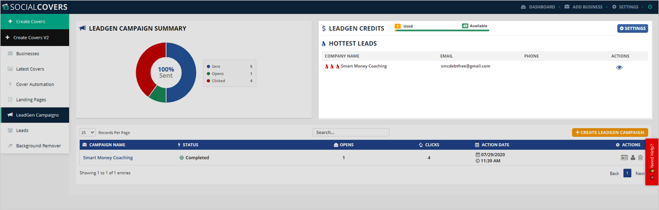 You will receive an alert once a lead opens an email or clicks the link. You will also be able to see the data for all the Opens and Clicks on your Lead Gen Campaign Dashboard.