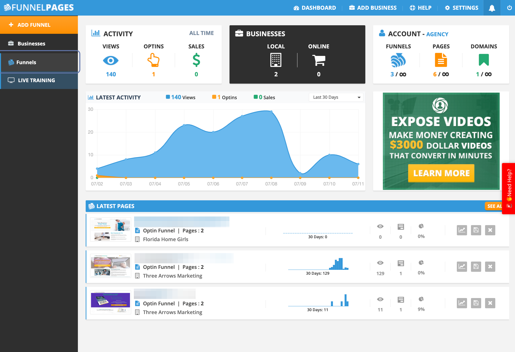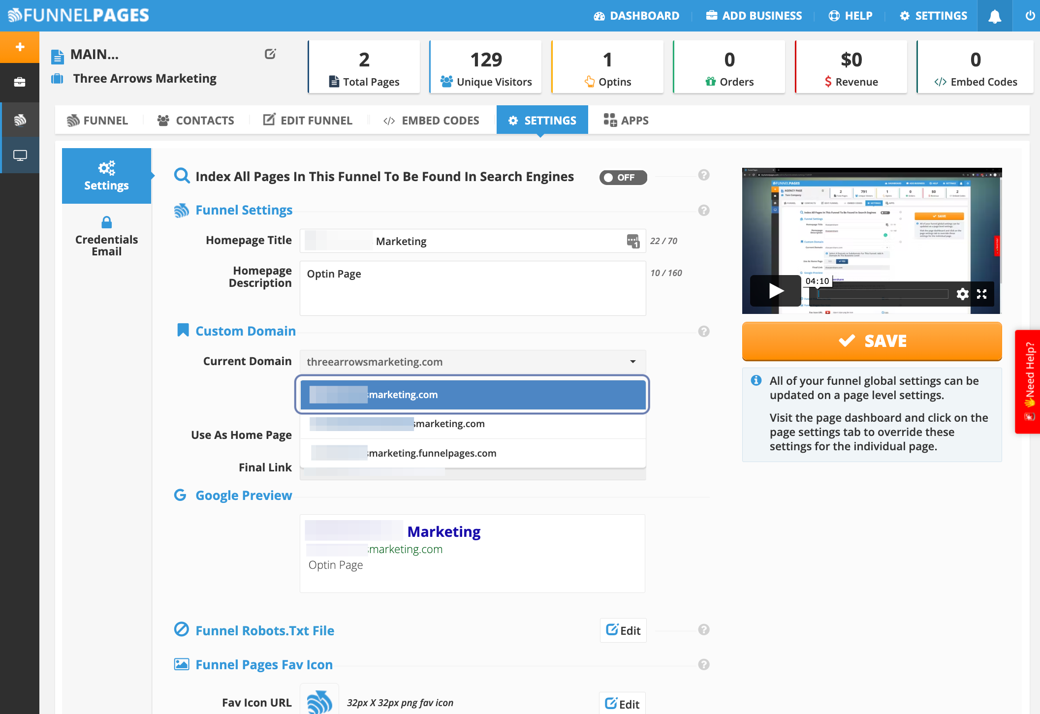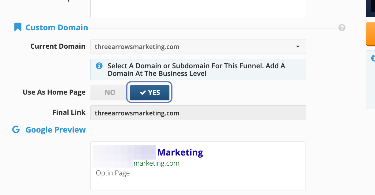 From your Funnel Pages Dashboard, select the Funnel you’ve created in which you will assign the White Label Domain that was assigned to a business previously.