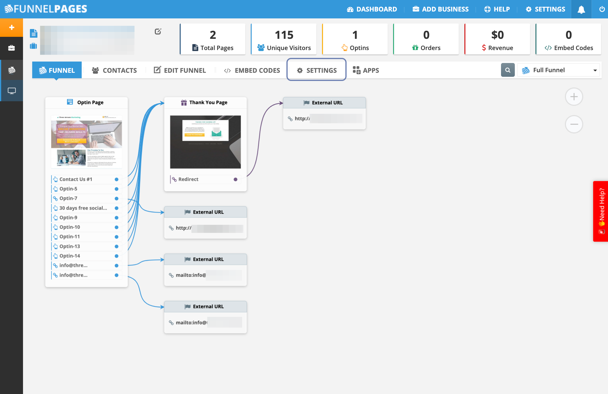 Once you select the Funnel, click SETTINGS.