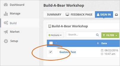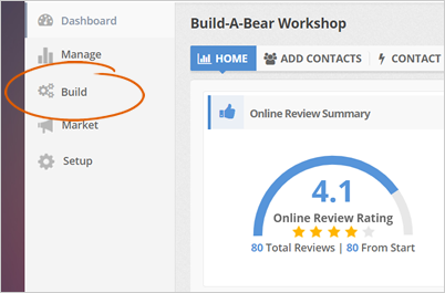 If you created a feedback page that is an actual survey page, you could get the information submitted. To start, navigate to Build.