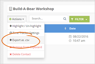 Anyone that signs in through the Sign In form is added to this dashboard. To export the contacts from this area, select the contact that you want to export.