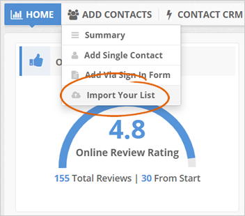 Step 1. From the merchant's dashboard, hover your mouse over the Add Contacts tab and select Import Your List.
