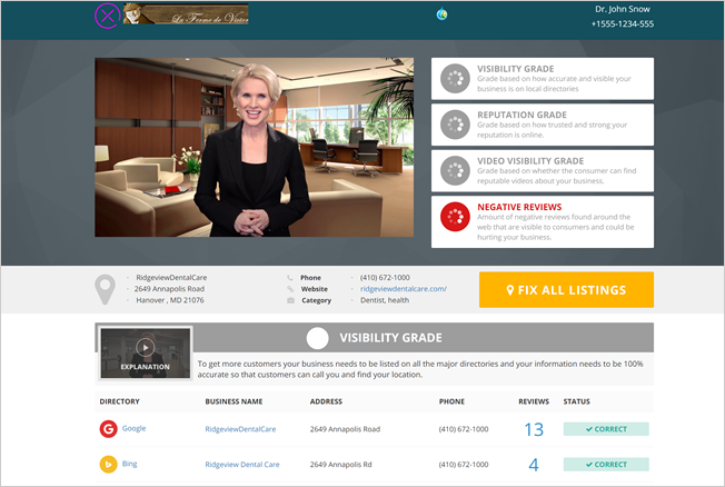Example: http://amazing.repgrader.com/page/MTQ0?b=NorthernNevada Chiropractic&p=(775)829-8686&c=US&a=5301LongleyLn SteB43&z89511=&l=Reno