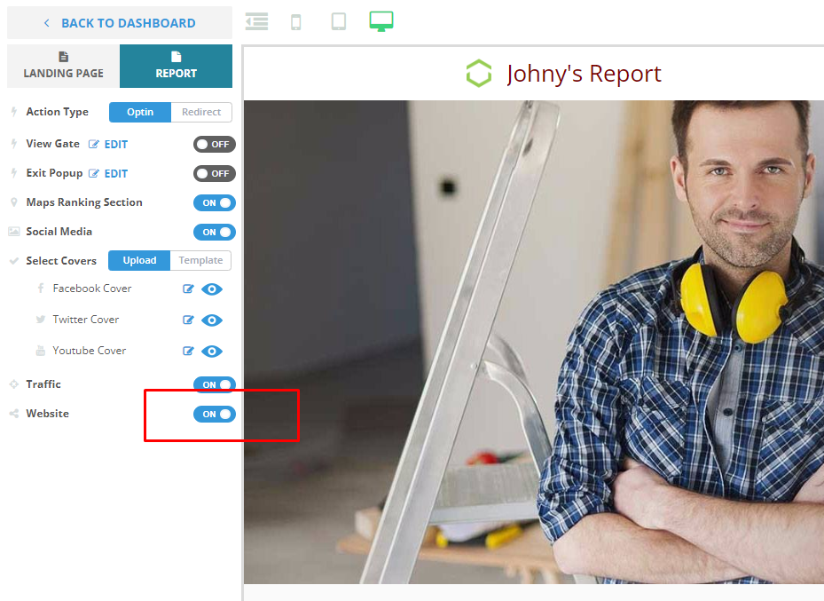 11. If you want to add a Website Review and SEO Audit in your report, enable this element.