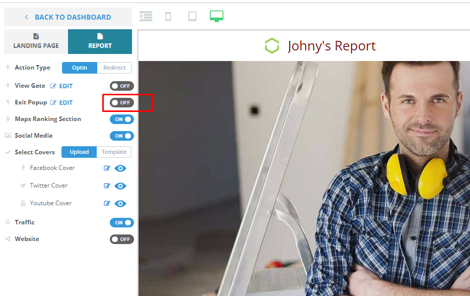 When turned ON, the exit pop-up appears if users attempt to close their report.