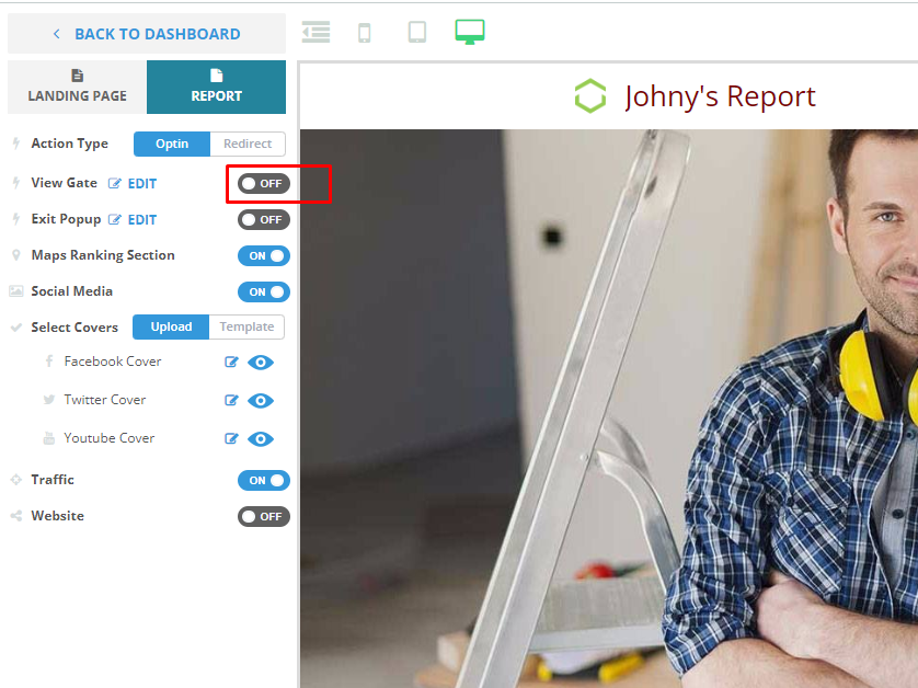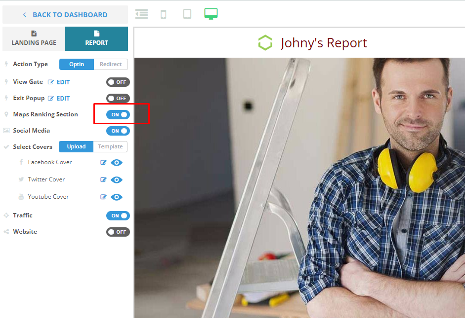 Changing your Reputation Report allows you to alter the appearance of your reputation report and add custom pixels for each page. You can add both retargeting and analytics tracking pixels to each page in your Reputation Report.