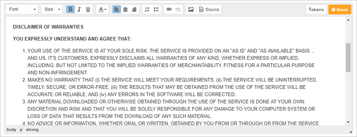 The first is your Terms of Service (TOS). Go through the TOS section and make sure that everything is covered for your business and how you are set up to conduct business.