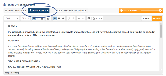 Next, you need to look at the Privacy Policy. This policy ensures that the information provided upon registration is kept private and confidential and will not be distributed, copied, or sold to anyone.