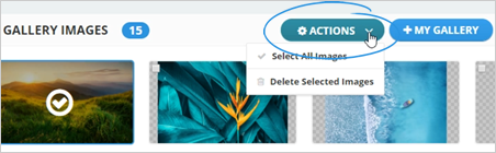 You have different actions available to manage the images in your gallery. On Edit Mode, click Actions and select the appropriate action that you want to use.