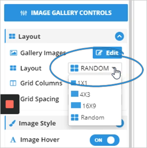 To change the layout of your image gallery, click the Layout control, and select the layout of your choice.