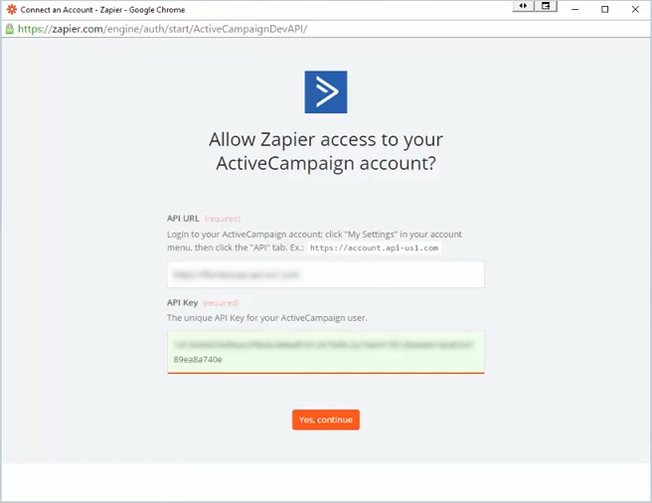 12. Once you have a Local Analyzer Zapier app connected to an active campaign account, you will be able to save and continue.