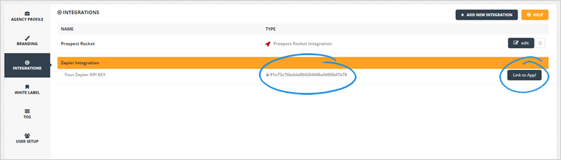 4. Click the Zapier Integration Link to App button.
