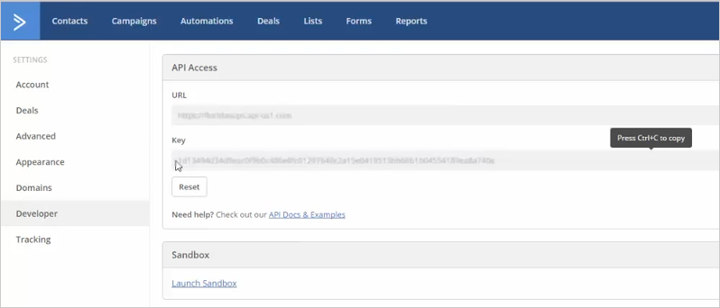 10. Grab your API URL and API Key from the developer settings page.
