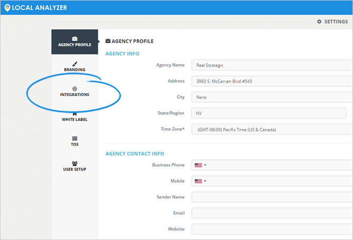 Agency Integration Settings