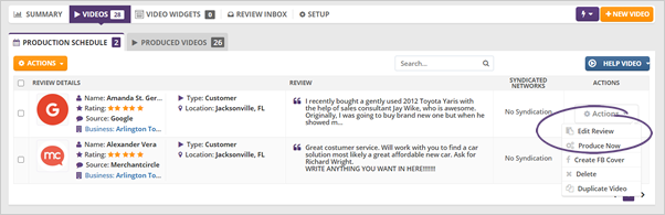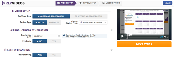 To begin, create and schedule a Review Video or Employee Review Video as you normally would within the Rep Videos software. Once you are done, you can start editing a video through these steps: