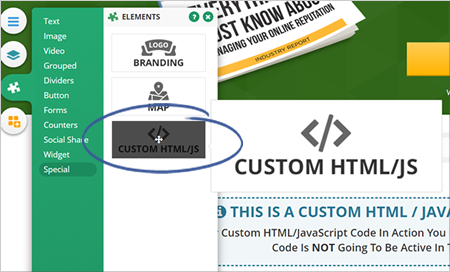14. Insert a Custom HTML element.