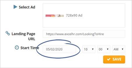 6. Schedule the date and time that you want this ad to start.