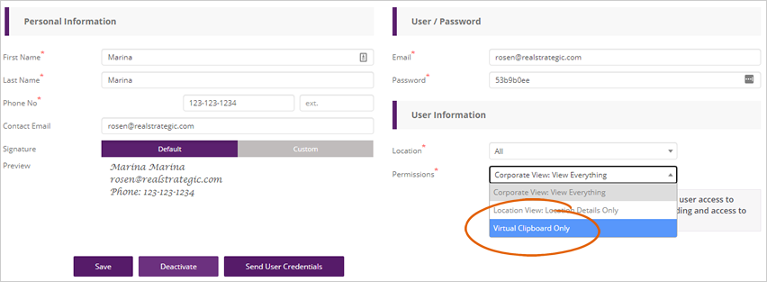 Step 5. Select the Virtual Clipboard Only option from the permissions drop-down menu.