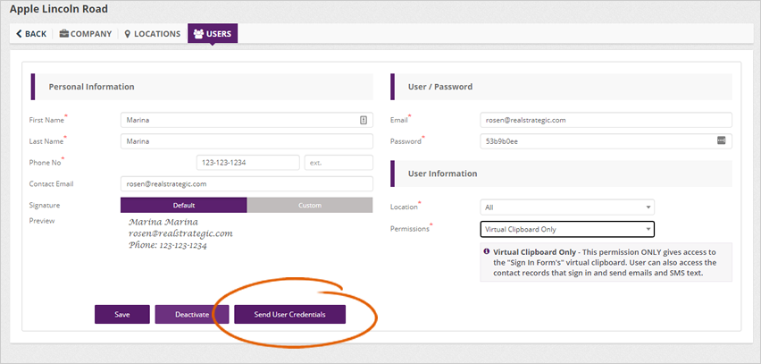 Step 7. To send the user's credentials, click the Send User Credentials button.
