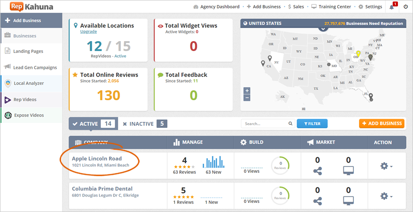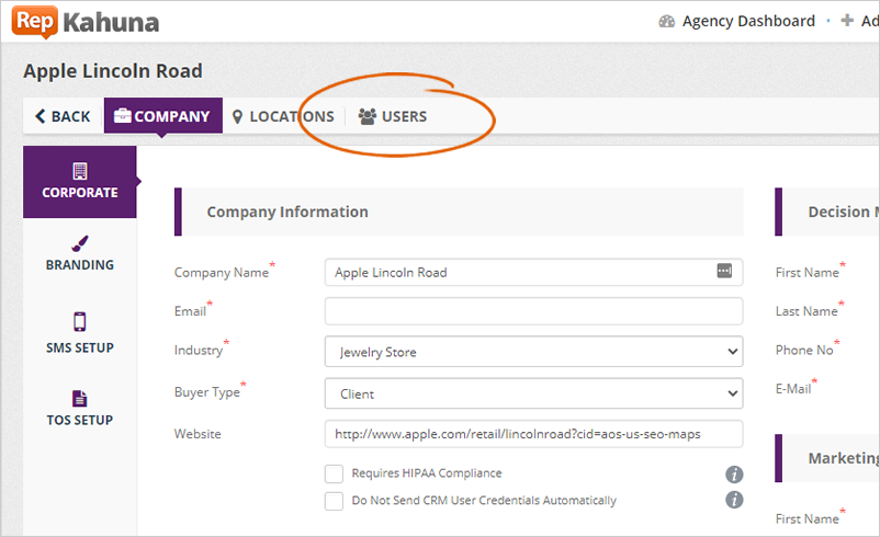 Step 1. Select a company from the agency dashboard.