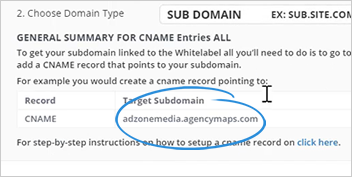 On the other hand, if you are using a Sub Domain, select Sub Domain from the drop-down list and add a CNAME Record in your DNS settings and point it to this Sub Domain.