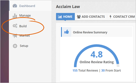 Step 1. From the Company Dashboard, click Build.