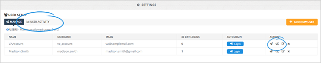 7. To check their activities, click the Activities icon or go to the User Activity tab.