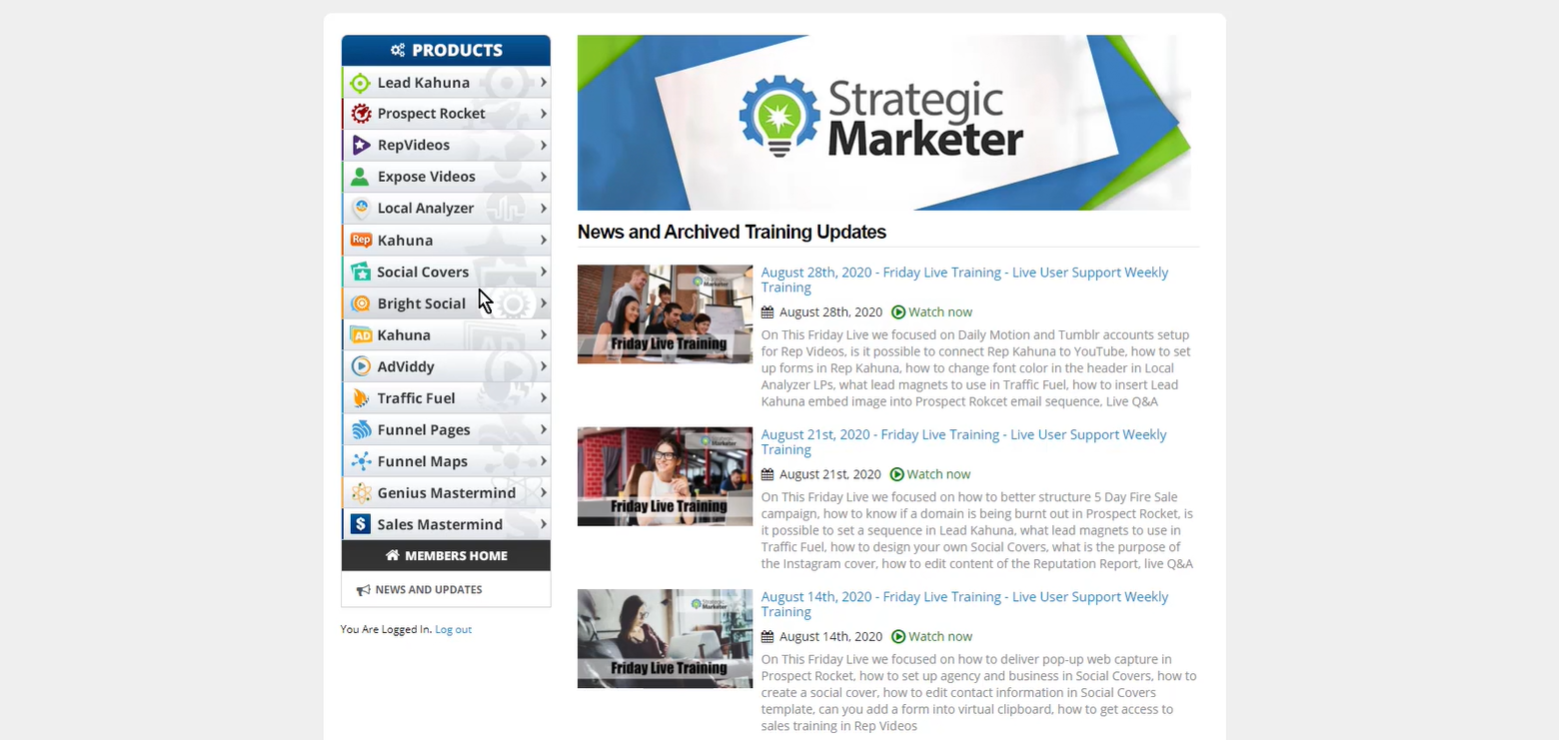 First you will learn how to find your Bright Social Subscription by logging in to your Members area: