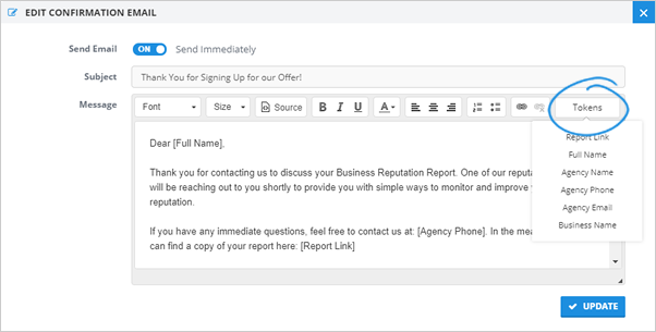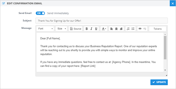 Each Landing Page gives you the ability to tailor the email sent to a Lead after they click on your opt-in popups: