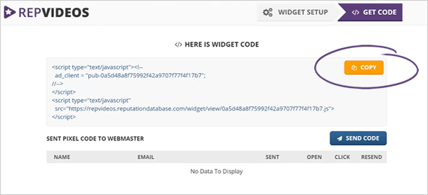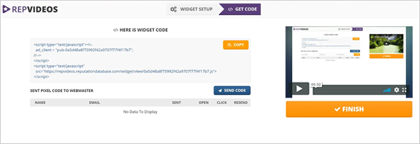 On this step of the widget setup, you will be presented with the code that could be set up on your client’s website and will be working from there.